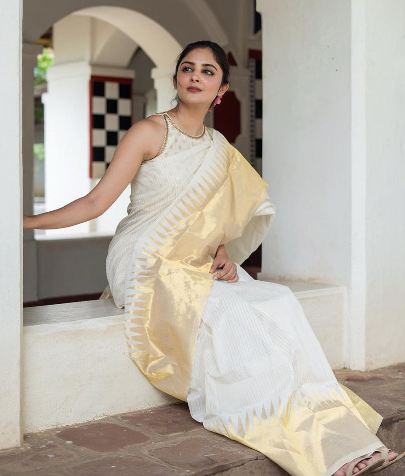 Add timeless charm to your ethnic collection with this exquisite Kanjivaram Pure Silk Saree, available...