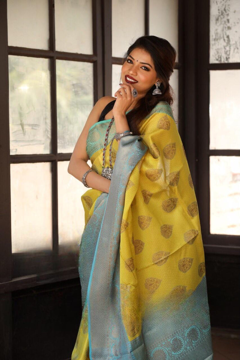 Elevate your ethnic wardrobe with Maharani Weaves’ exquisite Self-Design Banarasi Jacquard Saree in a timeless...