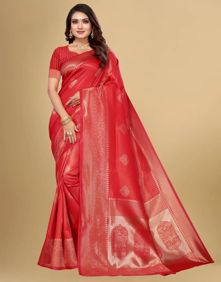Elevate your ethnic collection with this stunning Red Banarasi Saree, a perfect blend of tradition...