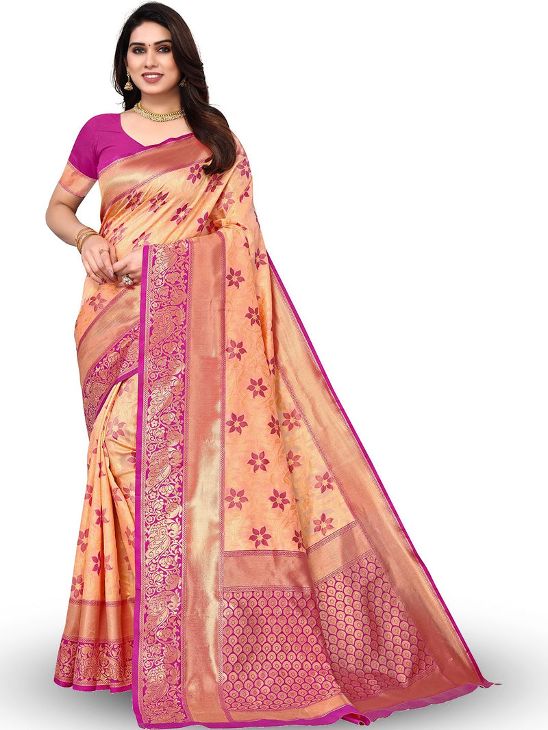 Ethnic Motifs Printed Zari Silk Cotton Banarasi Saree