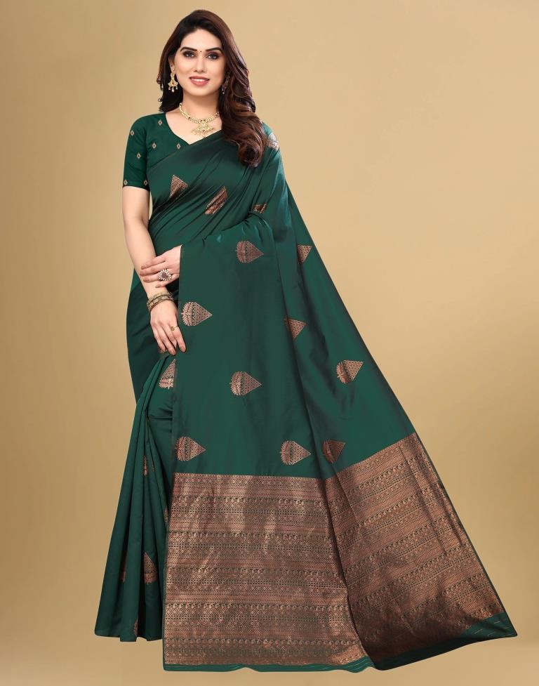 Add a touch of timeless charm to your ethnic wardrobe with this Woven Kanjivaram Soft...