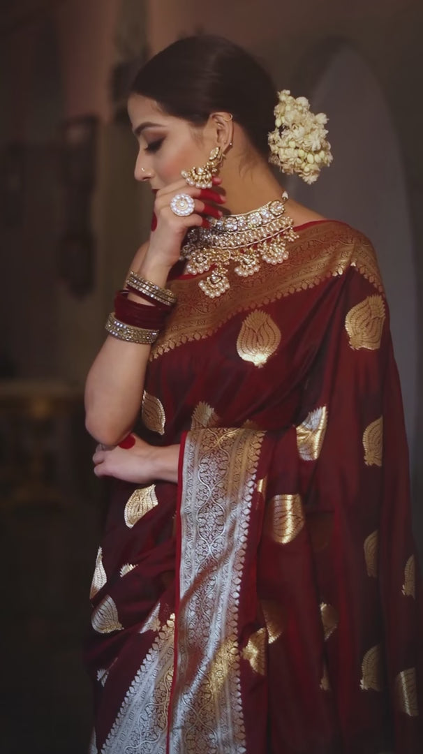 Tradional Partyware Banarasi Silk Saree With Blause