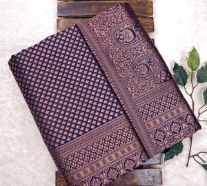 Banarasi Tissue Silk Saree with Rich Pallu & Zari Blouse (Navy Blue)