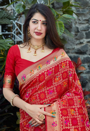 Enhance your ethnic collection with this Beautiful Red Pure Silk Saree, a timeless piece that exudes sophistication and charm. The luxurious silk fabric, rich red hue, and elegant woven detailing make it perfect for weddings, festive celebrations, and traditional occasions. Its vibrant yet graceful appeal ensures you stand out wherever you go.