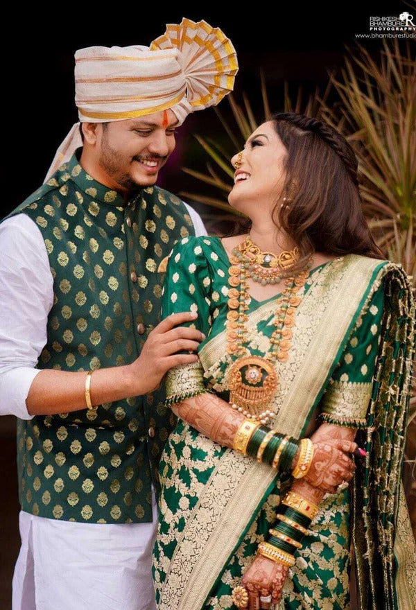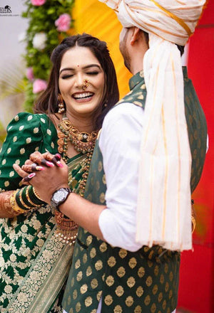 Checkered Bollywood Jacquard, Art Silk Saree (Green)