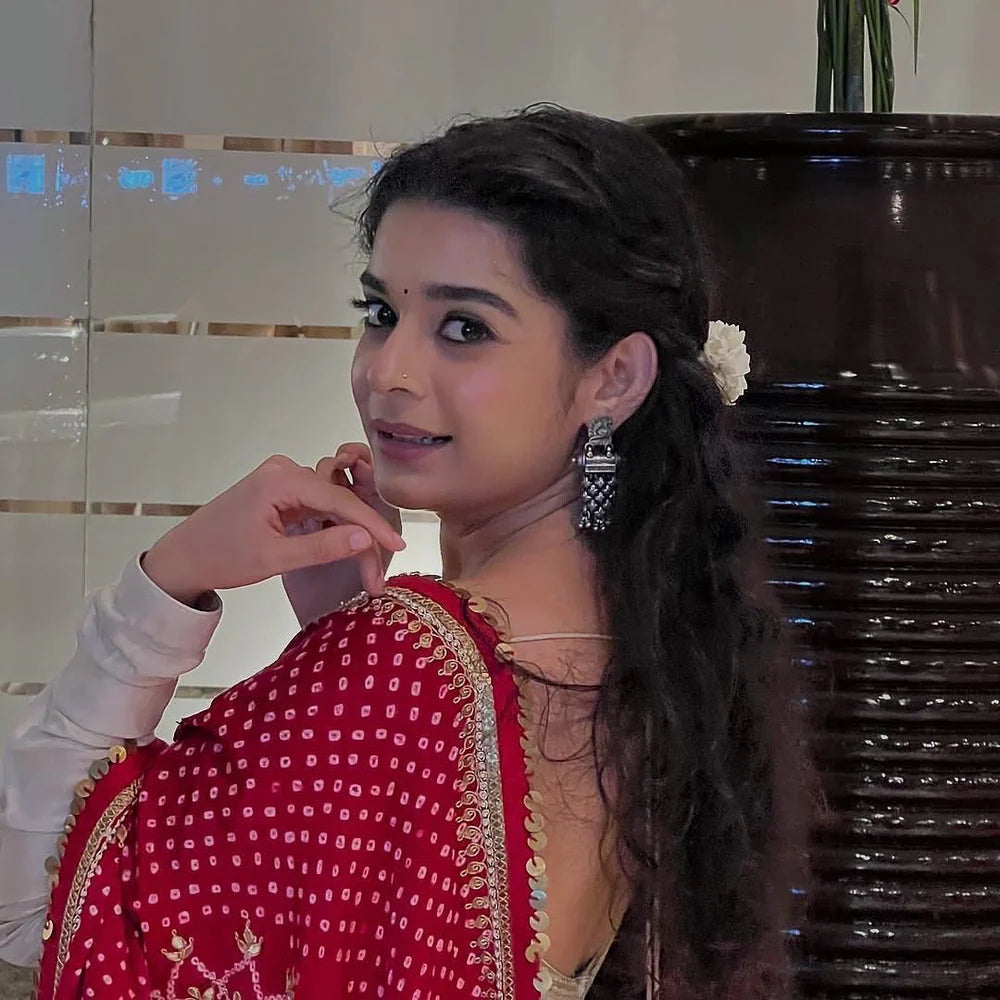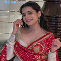 Crafted from premium Chinon fabric with graceful lace borders and delicate latkan detailing on the back dori. Flows beautifully with every step for a timeless festive look.