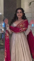 Designer Chinon Gown Set with Printed Bandhani Dupatta – 3 Piece