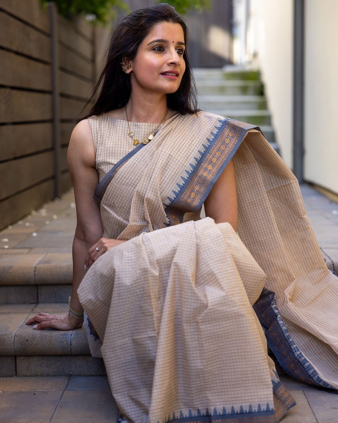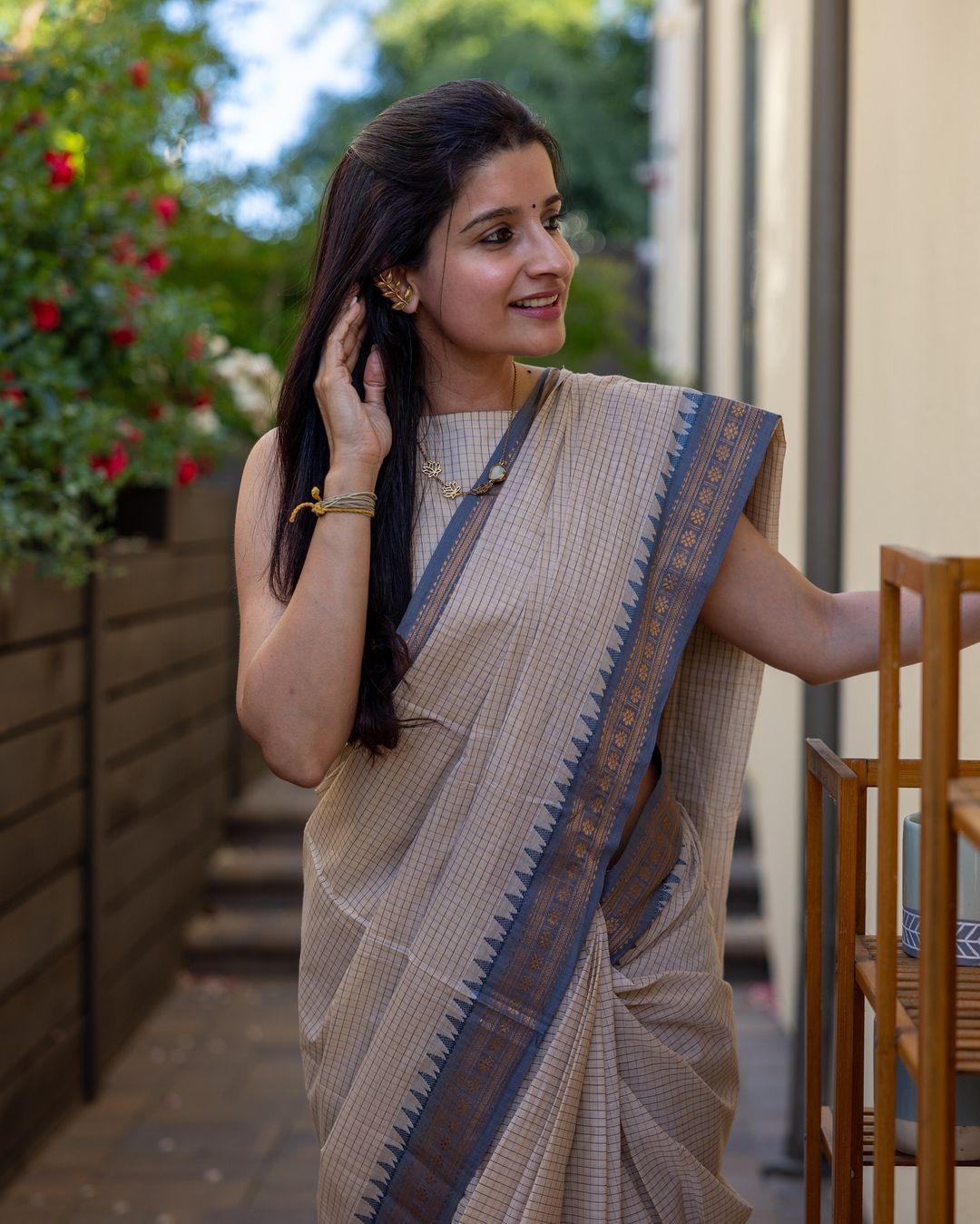 Demesne Beige Kanjivaram Silk Saree With Demure Blouse Piece
