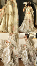 Completed with a printed organza dupatta, enhanced with sequin embroidery and lace border.