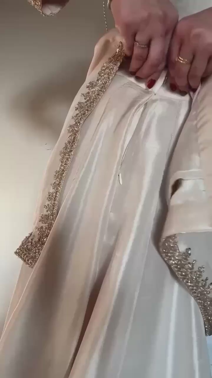 ✅ The gown is made from premium Chinon fabric with sequin embroidery and tassel detailing.