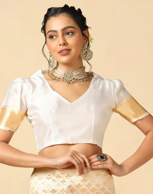Made from premium-quality poly silk jacquard, the saree ensures a smooth finish, soft texture, and easy drape. The floral zari detailing enhances its regal appeal, while the unstitched blouse piece lets you customize it to suit your style. Pair it with traditional jewelry to create a stunning festive look.