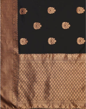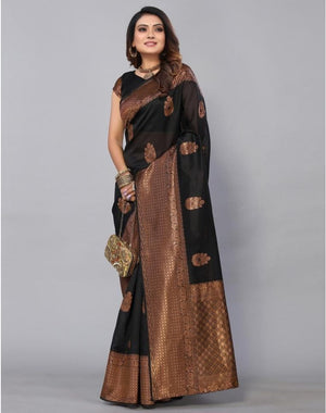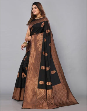 Make a striking impression with this elegant Jacquard Silk Saree in a rich Black hue. Designed for the modern woman with a love for timeless traditions, this saree features intricate jacquard weaving that adds depth and elegance to the overall look. The glossy silk texture ensures a graceful drape and refined finish.