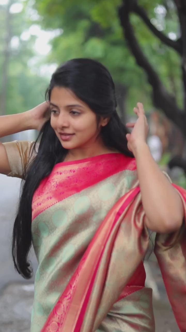 Women Kanjeevaram Silk Traditional Saree with Blouse Piece – Green