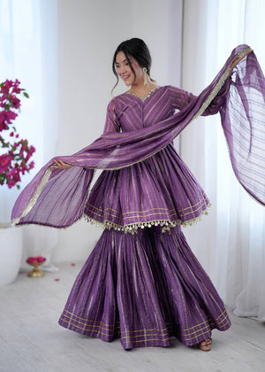 Premium Mal Chanderi Kurti–Sharara–Dupatta Set