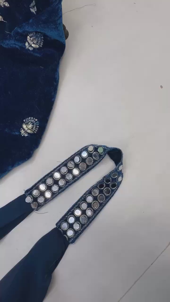 This premium 3-piece velvet kurti, velvet kali plazzo, and velvet-belt georgette dupatta set is crafted with beautiful sequence embroidery and real mirror work — giving you a warm, festive, and royal winter-season look.