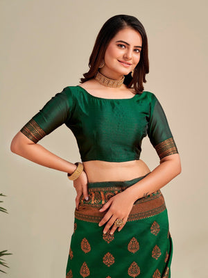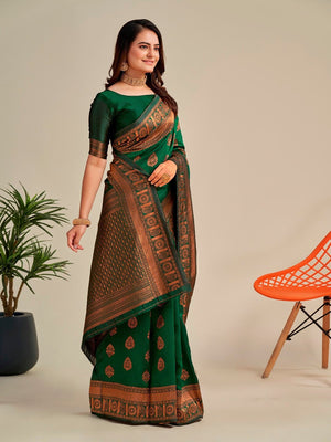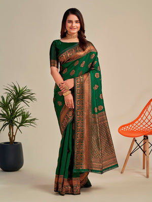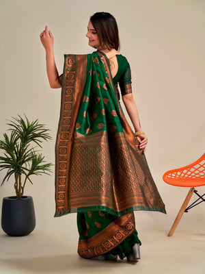 Step into elegance with this exquisite Green Banarasi Silk Saree, designed for women who appreciate the perfect blend of tradition and glamour. Ideal for parties, weddings, and festive occasions, this saree features intricate woven Banarasi patterns that highlight the rich craftsmanship of Indian weaving. The lustrous silk fabric drapes beautifully, ensuring you look graceful and sophisticated at every event.