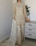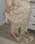 Beautiful Sequence Embroidery: Intricate work on top, palazzo & dupatta.